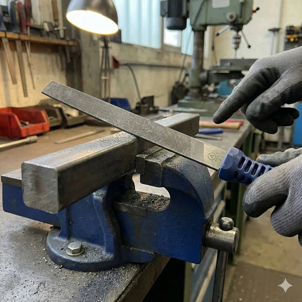 Parhaan lopputuloksen saavuttamiseksi ja viilan käyttöiän maksimoimiseksi, noudata seuraavia ohjeita: Kiinnitä työstettävä kappale tukevasti ruuvipenkkiin. Pidä viilasta kiinni molemmin käsin – toinen käsi kahvassa ja toinen ohjaamassa viilan päätä. Käytä tasaisia, rauhallisia työntöliikkeitä koko viilan pituudelta. Kohdista painetta vain työntövaiheessa; nosta viilaa hieman palautusliikkeen aikana, jotta hammastus ei tylsy turhaan. Puhdista viila säännöllisesti viilaharjalla poistaaksesi hampaiden väliin kertyneen lastun (pinnan), mikä ylläpitää leikkaustehoa.