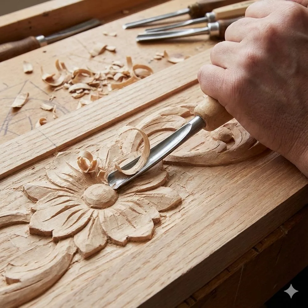 - Koristeveisto: Työkalu on ihanteellinen huonekalujen, koriste-esineiden ja puurakenteiden yksityiskohtaiseen koristeluun ja kuviointiin. Sen avulla voidaan luoda tarkkoja leikkauksia ja muotoja.