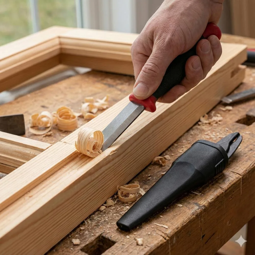 - Saneeraus ja purkutyö: Remonttikohteissa talttapuukko on erinomainen työkalu vanhojen listojen, liimajäämien tai muiden kiinnitysten poistamiseen. Sen kestävä rakenne sallii kevyen lyömisen esimerkiksi vasaralla tai kämmenellä, jolloin terä saadaan tunkeutumaan tiukkojenkin liitosten väliin. Tämä tekee siitä monipuolisemman kuin perinteinen hienopuusepän taltta, joka saattaa vaurioitua karkeammassa käytössä.