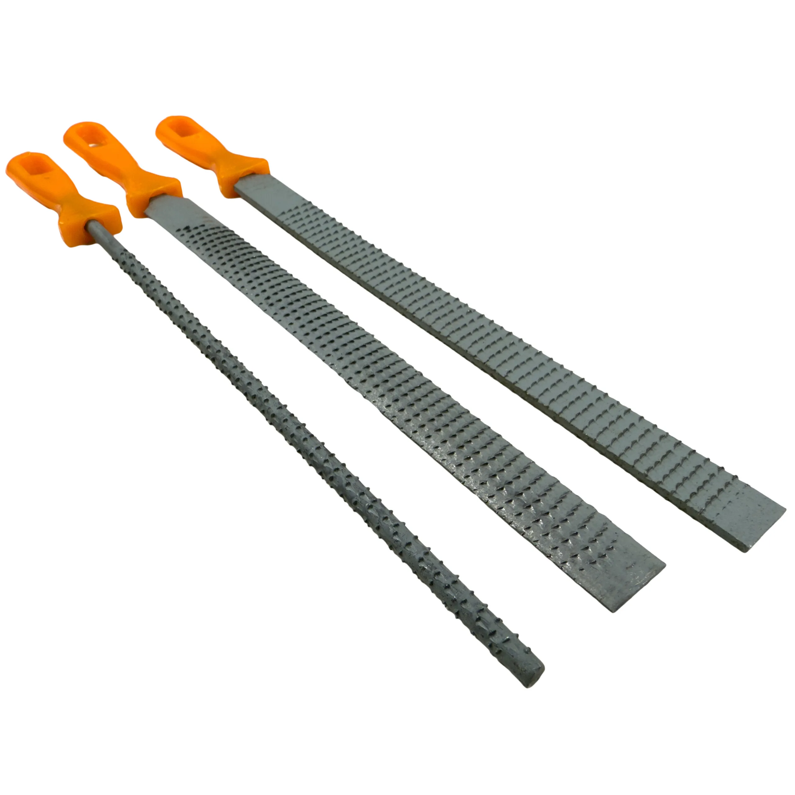 Ergonomiset kahvat takaavat miellyttävän otteen, vähentäen käsien väsymistä pidemmissäkin työstöprojekteissa. Raspeissa on karkea hammastus, joka sopii erinomaisesti niin pehmeän kuin kovankin puun muotoiluun ja materiaalin nopeaan poistamiseen.
