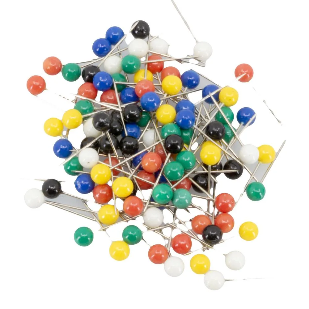 - 100 kpl värikkäitä karttaneuloja pyöreällä päällä.
